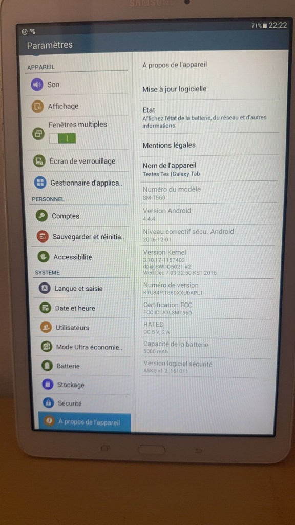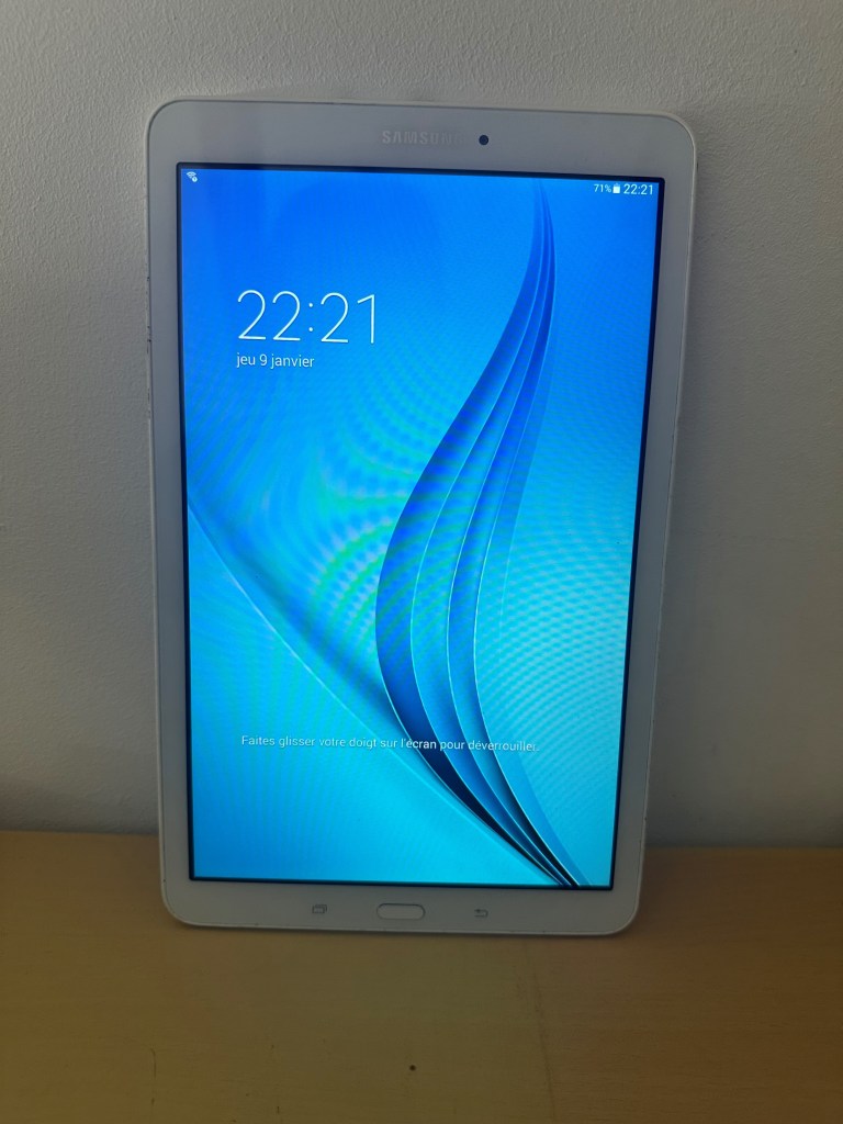 La Samsung Galaxy Tab E (SM-T560) est une tablette de 9,6 pouces, sortie en 2015, qui vise un usage quotidien. Elle dispose d’un écran WXGA avec une résolution de 1280 x 800 pixels. Sous le capot, elle est alimentée par un processeur quad-core, accompagnée de 1,5 Go de RAM et de 16 Go de stockage interne, extensible via microSD.